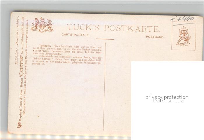 42927782 Verlag Tucks Oilette Nr. 645 B Tübingen Aleenbrücke Schloss KatCode 22080000002300