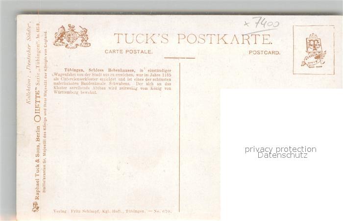 42927780 Verlag Tucks Oilette Nr. 645 B Tübingen Schloss Bebenhausen Charles E. Flower KatCode 22080000002300