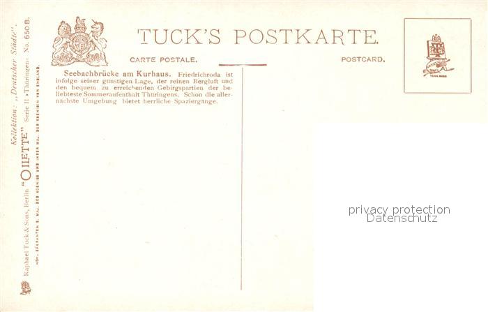 43261177 Verlag Tucks Oilette Nr. 650 B Friedrichroda Seebachbruecke Kurhaus postalisch nicht gelaufen Erhaltung siehe scans [PaolaD17] Paol Katcode 22080000002300