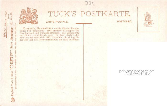 42926462 Verlag Tucks Oilette Nr. 684 B Konstanz Rathaus Paul Thomas KatCode 22080000002300
