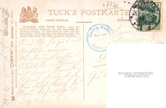 42926466 Verlag Tucks Oilette Nr. 684 B Konstanz Zum Hohen Hafen Paul Thomas KatCode 22080000002300