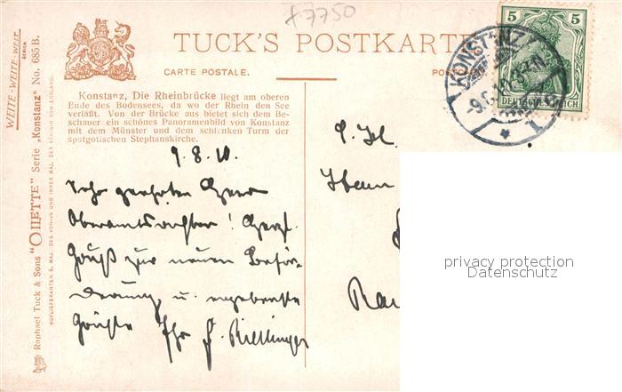 42926455 Verlag Tucks Oilette Nr. 685 B Konstanz Rheinbrücke KatCode 22080000002300