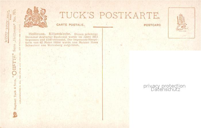 13567842 Verlag Tucks Oilette Nr. 700 Heilbronn Kilianskirche Charles E. Flower postalisch nicht gelaufen Erhaltung siehe scans [PaolaD17] Paol Katcode 22080000002300