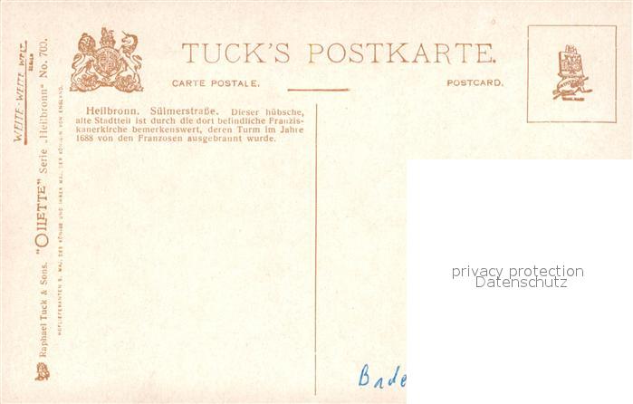Verlag Tucks Oilette Nr. 700 Heilbronn S?lmerstrasse Charles E.