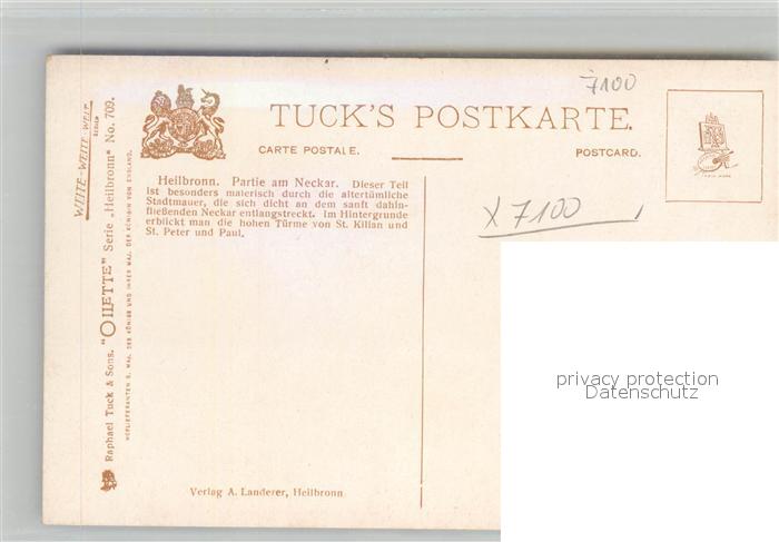 42927860 Verlag Tucks Oilette Nr. 709 Heilbronn Partie am Neckar Charles E. Flower KatCode 22080000002300