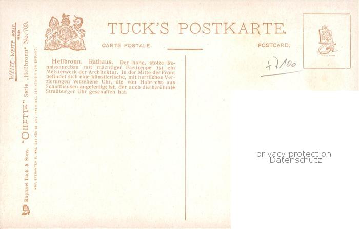 42926434 Verlag Tucks Oilette Nr. 709 Heilbronn Rathaus Charles E. Flower KatCode 22080000002300