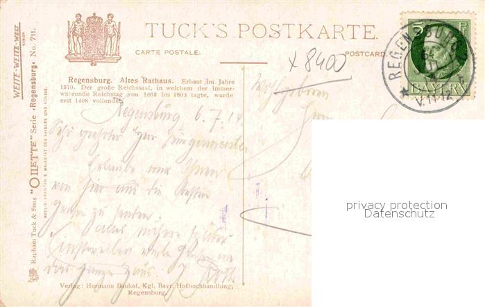12636721 Verlag Tucks Oilette Nr. 711 Regensburg Altes Rathaus Charles E. Flower KatCode 22080000002300