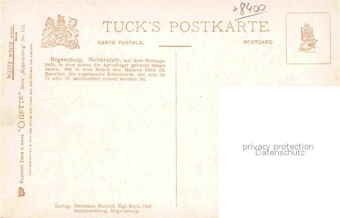 12636725 Verlag Tucks Oilette Nr. 711 Regensburg Moltkeplatz Römerturm Herzogshof KatCode 22080000002300