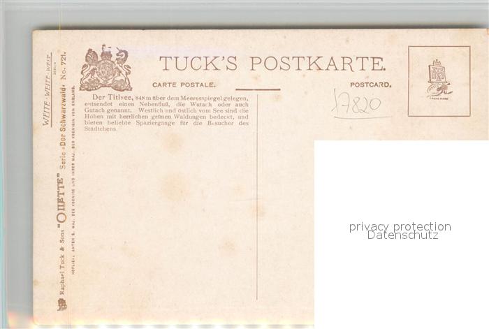 42927836 Verlag Tucks Oilette Nr. 721 Titisee Schwarzwald J. Günther KatCode 22080000002300