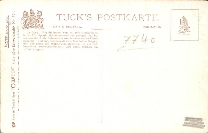 11517633 Verlag Tucks Oilette Nr. 721 Triberg J. Günther KatCode 22080000002300