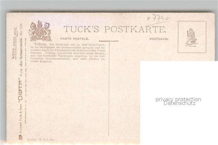 42927792 Verlag Tucks Oilette Nr. 721 Triberg Schwarzwald KatCode 22080000002300