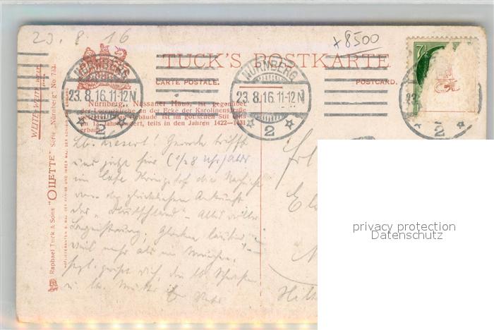 42933460 Verlag Tucks Oilette Nr. 733 Nürnberg Nassauer Haus Charles E. Flower KatCode 22080000002300