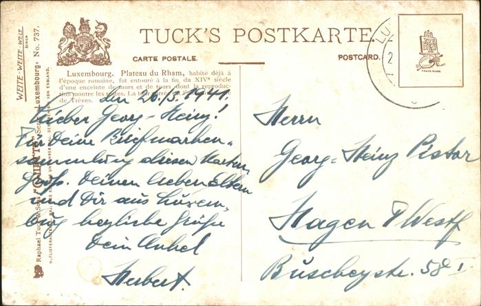 11362473 Verlag Tucks Oilette Nr. 737 Luxembourg Rhamplateau KatCode 22080000002300