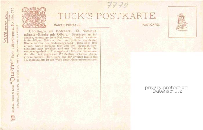 12739390 Verlag Tucks Oilette Nr. 775 Überlingen am Bodensee St. Nicolausmünster Kirche Ölberg KatCode 22080000002300