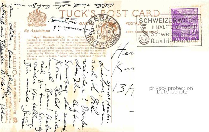 12739363 Verlag Tucks Oilette Nr. 7906 Aye Division Lobby House of Commons Charles E. Flower postalisch gelaufen Erhaltung siehe scans [PaolaD17] alte Postkarte Paol Katcode 22080000002300