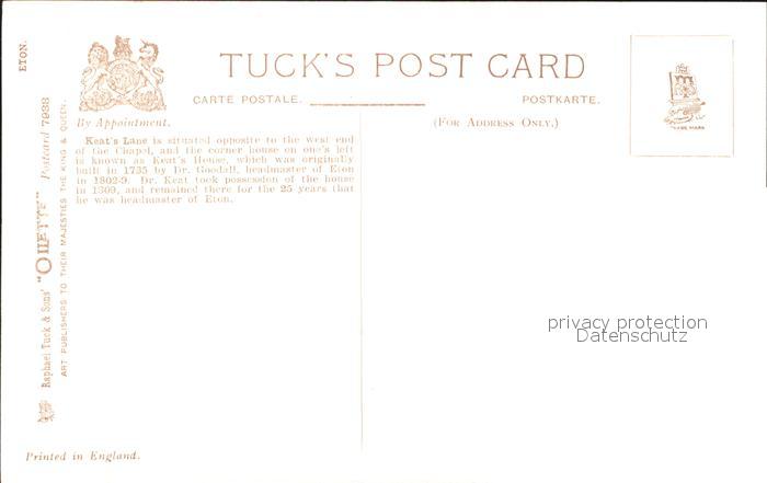 Verlag Tucks Oilette Nr. 7938 Keat’s Lane Eton Charles E. Flower postalisch nicht gelaufen Erhaltung siehe scans