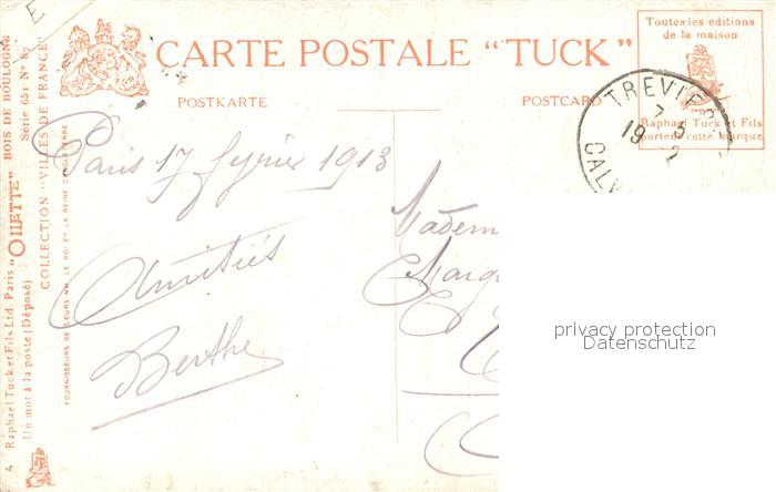 43261104 Verlag Tucks Oilette Nr. 87 Paris Bois de Boulogne Pferdekutsche postalisch gelaufen Erhaltung siehe scans [PaolaD17] alte Postkarte Paol Katcode 22080000002300