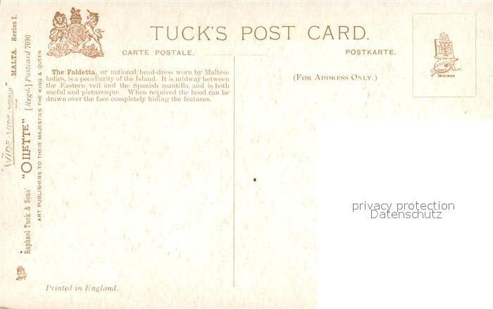 73756243 Verlag Tucks Oilette Nr. Nr.7090 A Maltese Lady With Faldetta postalisch nicht gelaufen Erhaltung siehe scans [IrynaD87] Iryn Katcode 22080000002300