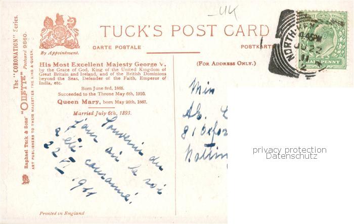 73884962 Verlag Tucks Oilette Serie 9860 His most Excellent Majesty George V postalisch gelaufen Erhaltung siehe scans [IrynaD87] alte Postkarte Iryn Katcode 22080000002300