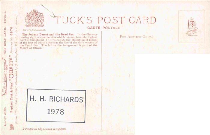 74033628 Verlag Tucks Oilette Serie Nr. 8978 Judean Desert Dead Sea Holy Land postalisch nicht gelaufen Erhaltung siehe scans [IrynaD87] KatCode: 22080000002300