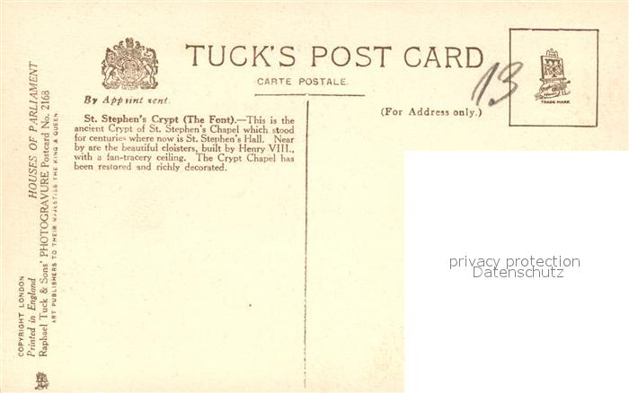 Verlag Tucks St. Stephen’s Crypt Font postalisch nicht gelaufen Erhaltung siehe scans [PaolaD17]