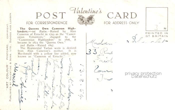 73844067 alte Postkarte Verlag Valentines Nr. Nr. A453 Sergeant Drummers Queens own Cameron Mighlanders postalisch gelaufen Erhaltung siehe scans [IrynaD87] KatCode: 22080000002200