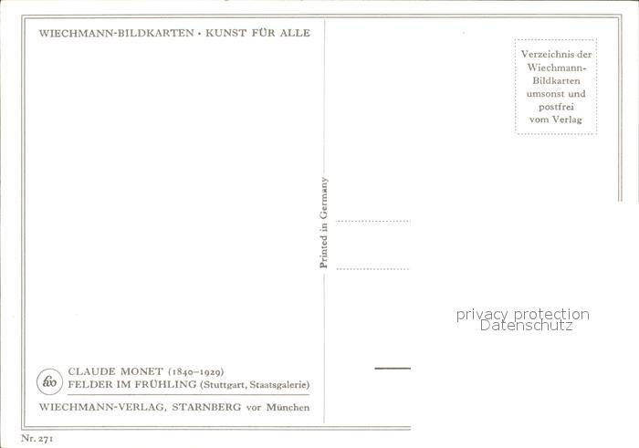 Verlag Wiechmann Nr. 271 Claude Monet Felder im Fruehling postalisch nicht gelaufen Erhaltung siehe scans