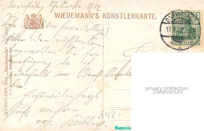 alte Postkarte Verlag Wiedemann WIRO Nr. 1872 A Darmstadt Louisenplatz postalisch gelaufen Erhaltung siehe scans [PaolaD17]