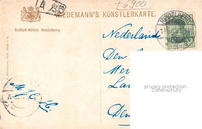 43261062 Verlag Wiedemann WIRO Nr. 1966 A Schloss-Hotels Heidelberg postalisch gelaufen Erhaltung siehe scans [PaolaD17] alte Postkarte Paol Katcode 22080000002200