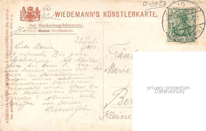 43261030 Verlag Wiedemann WIRO Nr. 2477 A Bad Blankenburg-Schwarzatal Greifenstein KatCode 22080000002200