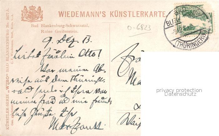 43261028 Verlag Wiedemann WIRO Nr. 2477 A Bad Blankenburg-Schwarzatal Ruine Greifenstein postalisch gelaufen Erhaltung siehe scans [PaolaD17] alte Postkarte Paol Katcode 22080000002200