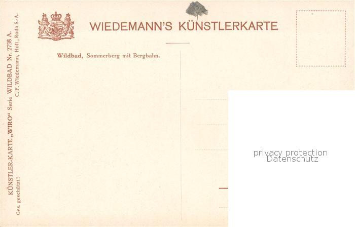 Verlag Wiedemann WIRO Nr. 2738 A Wildbad Sommerberg Bergbahn postalisch nicht gelaufen Erhaltung siehe scans [PaolaD17]