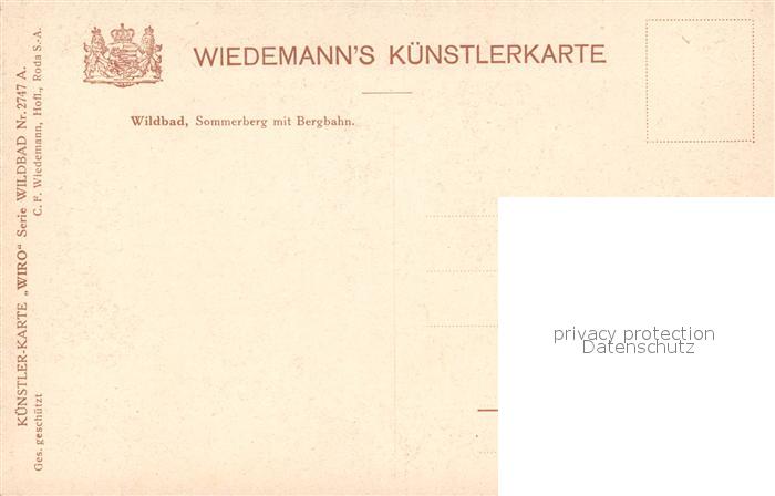 43261103 Verlag Wiedemann WIRO Nr. 2747 A Wildbad Sommerberg Bergbahn postalisch nicht gelaufen Erhaltung siehe scans [PaolaD17] Paol Katcode 22080000002200