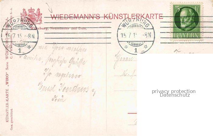 Verlag Wiedemann WIRO Nr. 2933 Wuerzburg Neumunster Dom postalisch gelaufen Erhaltung siehe scans [IrynaD87] alte Postkarte Iryn Katcode 22080000002200