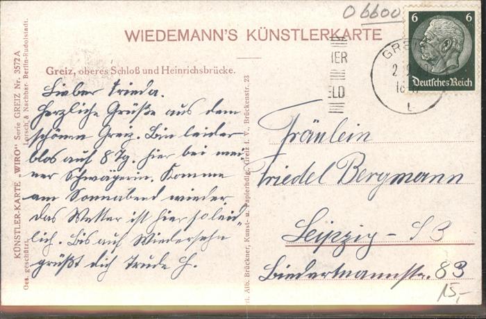 11448156 Verlag Wiedemann WIRO Nr. 3572 A Greiz Schloß Heinrichsbrücke KatCode 22080000002200