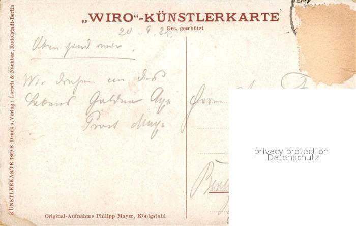 Verlag WIRO Wiedemann Nr. 1869 B Heidelberg Koenigstuhl
