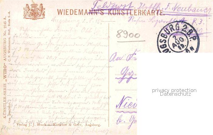 12738257 Verlag WIRO Wiedemann Nr. 2145 A Augsburg Rathaus Perlachturm postalisch gelaufen Feldpost Erhaltung siehe scans [PaolaD17] Feldpost alte Postkarte Paol Katcode 22080000002200