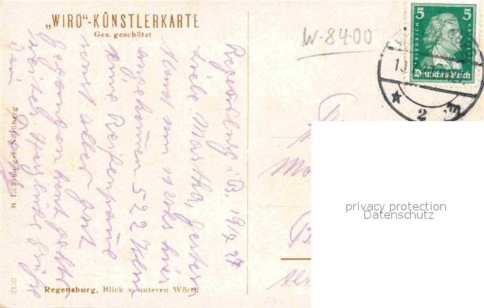 12642162 Verlag WIRO Wiedemann Nr. 2152 Regensburg Unterer Woerth postalisch gelaufen Erhaltung siehe scans [PaolaD17] alte Postkarte Paol Katcode 22080000002200