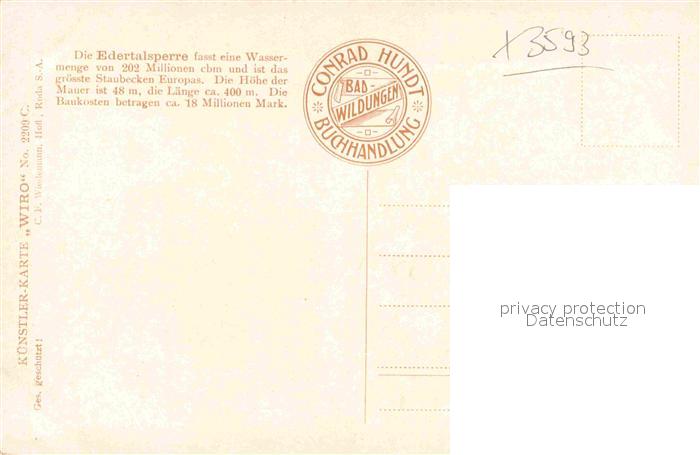 12642229 Verlag WIRO Wiedemann Nr. 2209 C Edertalsperre postalisch nicht gelaufen Erhaltung siehe scans [PaolaD17] Paol Katcode 22080000002200