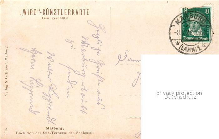 43261180 Verlag WIRO Wiedemann Nr. 2215 Marburg Schloss postalisch gelaufen Erhaltung siehe scans [PaolaD17] alte Postkarte Paol Katcode 22080000002200