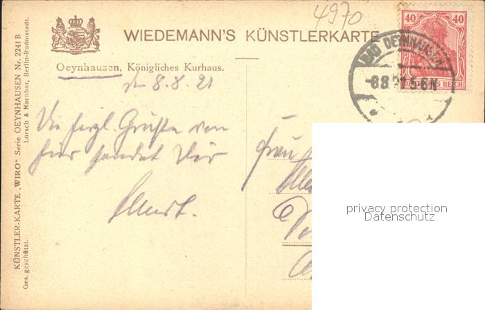 alte Postkarte Verlag WIRO Wiedemann Nr. 2241 B Oeynhausen Koenigliches Kurhaus postalisch gelaufen Erhaltung siehe scans