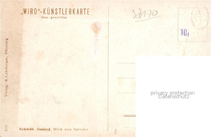 43261076 Verlag WIRO Wiedemann Nr. 2787 Schwaebisch Gmuend Blick vom Salvator postalisch nicht gelaufen Erhaltung siehe scans [PaolaD17] Paol Katcode 22080000002200