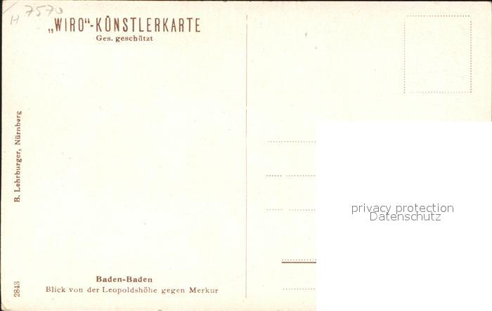 11685213 Verlag WIRO Wiedemann Nr. 2843 Baden-Baden Merkur KatCode 22080000002200
