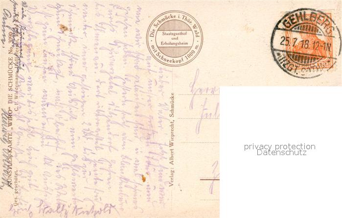 43106861 Verlag WIRO Wiedemann Nr. 3090 Blick von der Schmücke Thüringer Wald KatCode 22080000002200