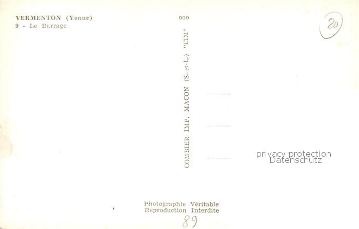 13486479 Vermenton Le Barrage postalisch nicht gelaufen Erhaltung siehe scans [WerneD78] KatCode: 11170089189441