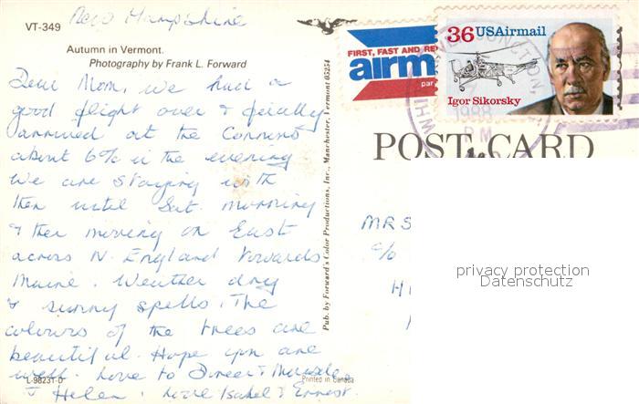 73130334 old postcard Vermont Autumn postalisch gelaufen Erhaltung siehe scans [NatalD47] KatCode: 14140150000000