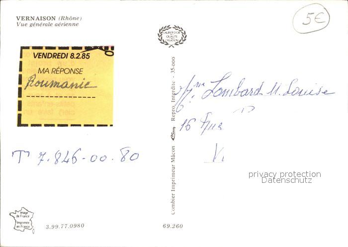 12002157 carte postale Vernaison Fliegeraufnahme postalisch gelaufen Erhaltung siehe scans KatCode: 11170069169260