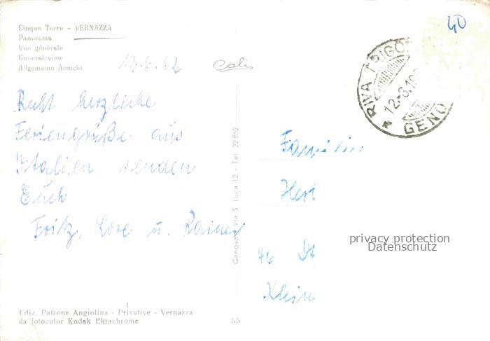 74076357 old postcard Vernazza La Spezia Liguria IT Kuestenpanorama postalisch gelaufen Erhaltung siehe scans [FriedD77] KatCode: 11240