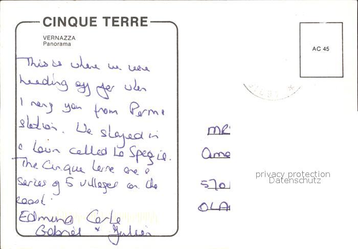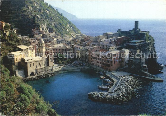old postcard Vernazza Panorama Hafen Kueste postalisch gelaufen Erhaltung siehe scans