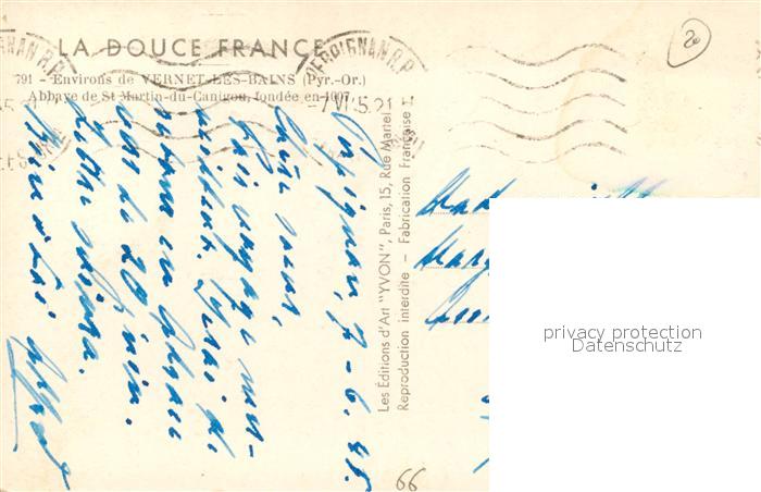 13483442 carte postale Vernet-les-Bains Abbaye de Saint Martin du Canigou les Pyrénées postalisch gelaufen Erhaltung siehe scans [FriedD77] KatCode: 11170066366222